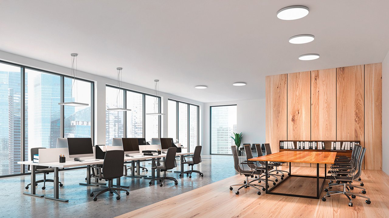Available in round and square versions as wall, ceiling and pendant luminaires in two sizes (380 and 600 mm) and three light colours (3000, 3500 and 4000 K) via a CCT switch.