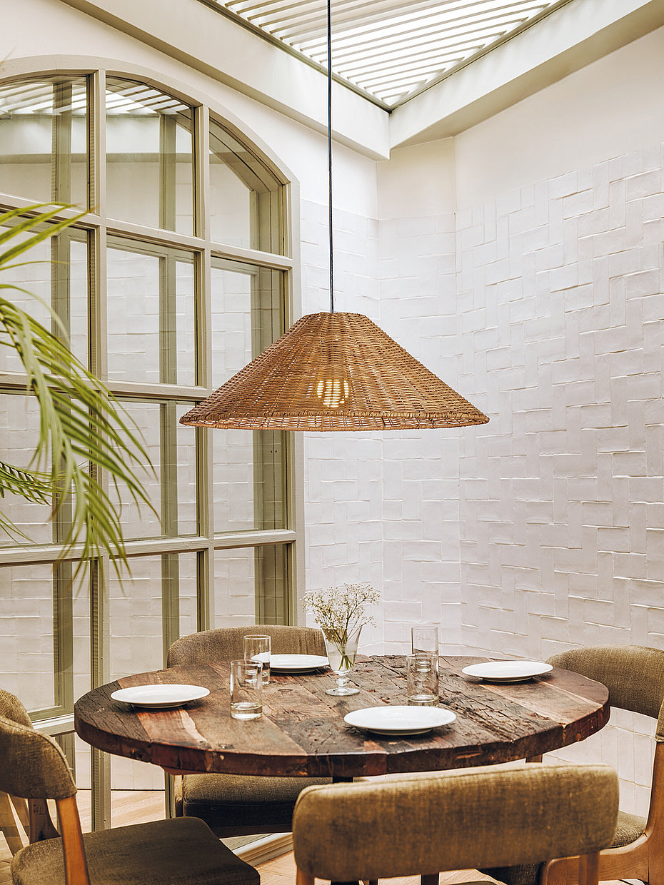 Rattan is a natural material and is known for its flexibility, durability and light weight, making it a great material for this luminaire.
