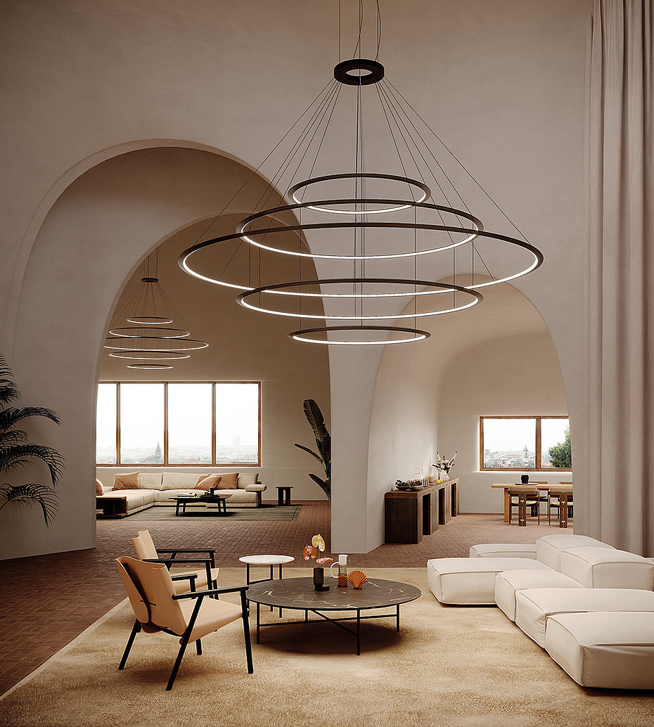 CIRCULAR is a minimalist luminaire that plays with light and can be used both as an ambient and functional luminaire thanks to its wide range of possible variations.
