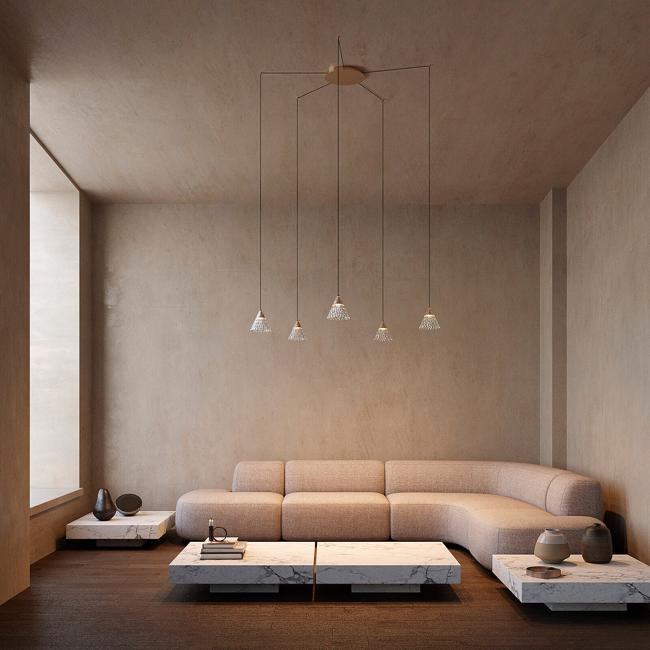 For the ceiling as pendant version or as a wall luminaire. The collection is available as a single or multiple luminaire.