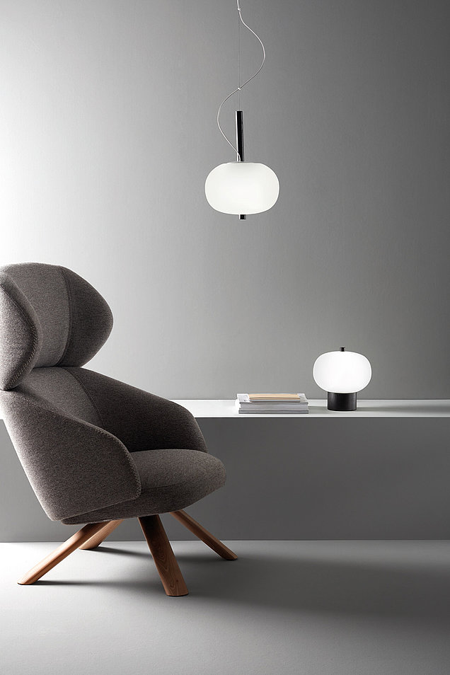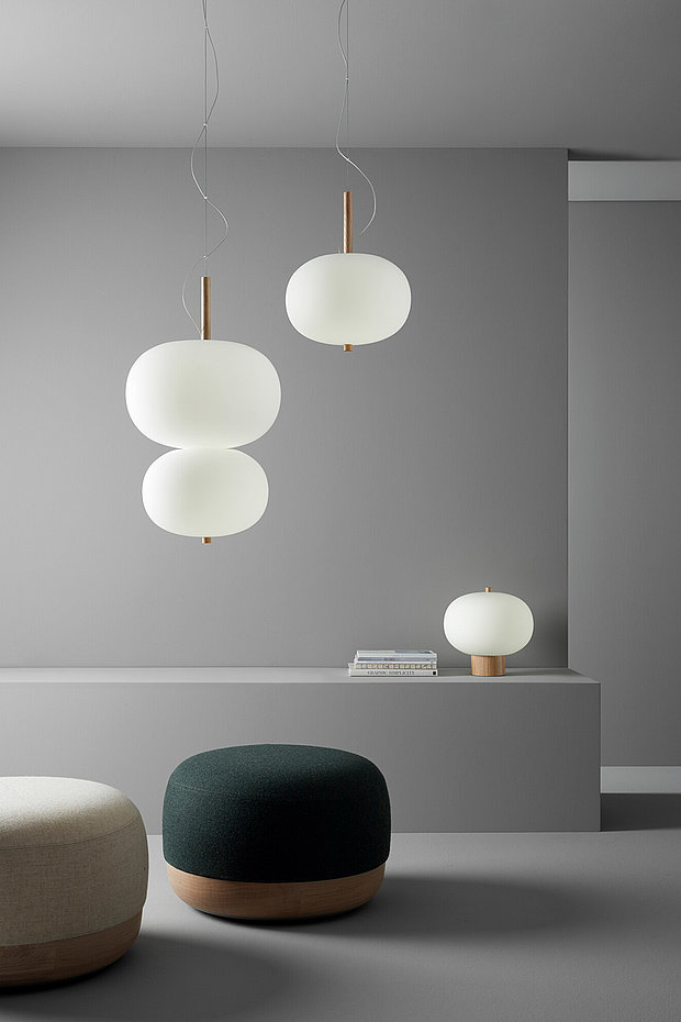 ILARGI ist vom baskischen Studio Iratzoki Lizaso entworfenen worden und besticht durch ein raffiniertes, minimalistisches Zusammenspiel, das durch die Kombination von traditionell mundgeblasenen Glaskugeln und einem Holzstab entsteht, durch den die Glaskugeln gehalten werden.
