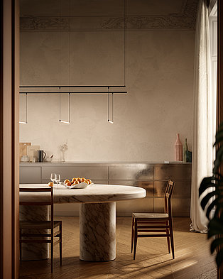 das den Raum mit einer starken Präsenz füllen oder die Leere mit einer angenehmen räumlichen Wirkung besetzen kann.