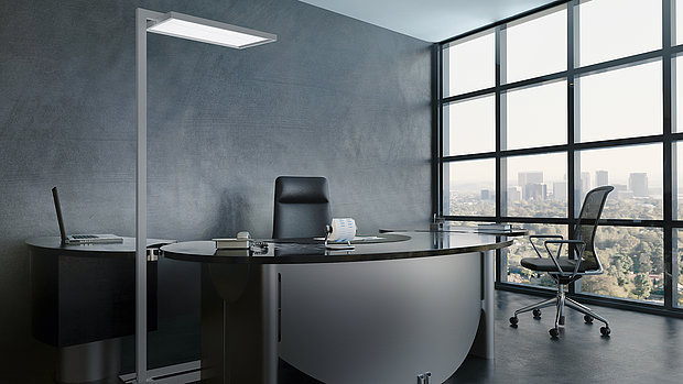 Die integrierte LIGHT CONTROL STRUCTURE (LCS) bricht das Licht an exakt vorher berechneten Stellen und lenkt es blendfrei in den Raum, dies ermöglicht die richtungsneutrale Leuchtenanordnung bei normgerechter Blendungsbegrenzung.