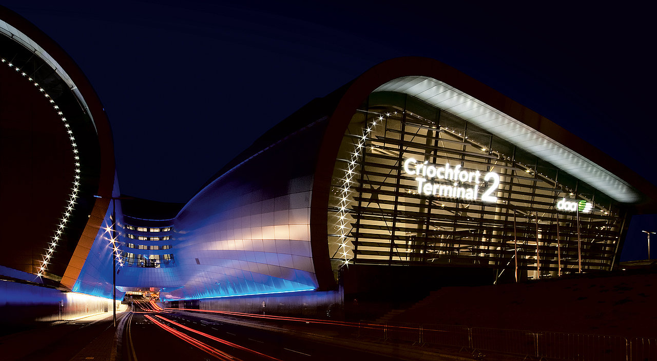Die beiden markanten Fassadenüberstände werden durch LED PUCKs beleuchtet. Eine gebogene Röhre aus gepresstem Aluminium mit 50 mm Durchmesser, in der die PUCKs mit 1,6 W Leistung eingesetzt wurden, folgen dem Rundbogen des Gebäudedaches und fluten ihn mit Licht.