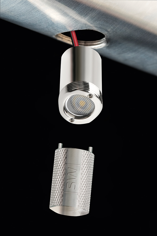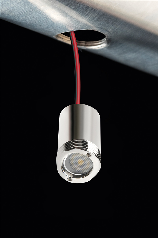BÜNDIG in die Unterseite des Handlaufs integrierte LED PUCKs sind TAGSÜBER FAST UNSICHTBAR