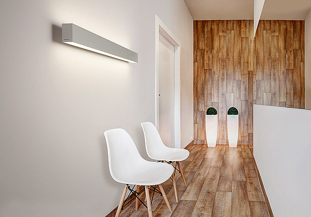 Mit dieser Lichtcharakteristik erhält der Raum zusätzlich zum eindrucksvollen Erscheinungsbild der Leuchte eine homogene und blendfreie Beleuchtung.