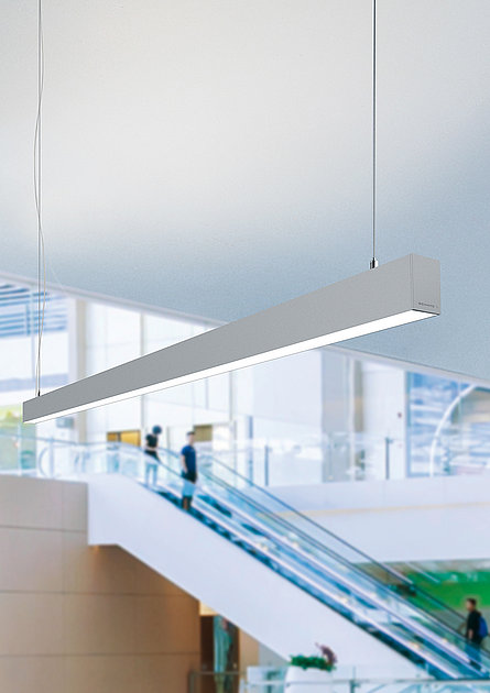 Eine leistungsstarke Lichtlösung mit DIREKT/INDIREKTER LICHTVERTEILUNG. Die gute Entblendung erlaubt eine freie Positionierung im Raum, durch die Ausgewogenheit zwischen diffusem indirekten Licht und gerichtetem direkten Licht entsteht ein angenehmer Raumeindruck.