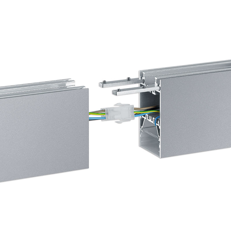 Die Leuchteneinheiten werden über ein einfaches Stecksystem miteinander verbunden, um eine Systembeleuchtung zu schaffen.