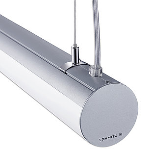 Die Aufhängung wird werkzeuglos mit Clips am Leuchtenkörper befestigt, diese können analog zu den Aufhängepunkten stufenlos verschoben werden.