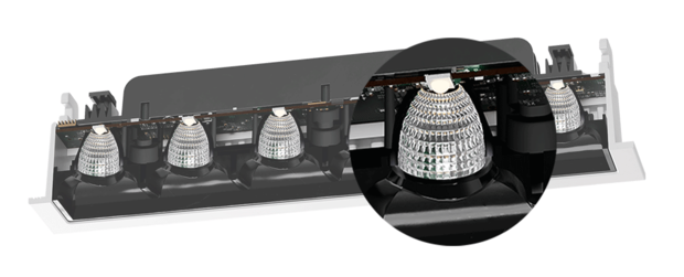 Das optische System von GAME ist das Ergebnis eines intensiven Entwicklungsprozesses. Die hochauflösenden Micro Reflektoren sind in den innovativen Blendschutzdiffusor integriert und erreichen einen UGR < 16.