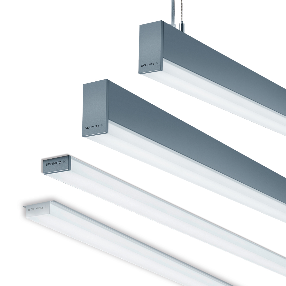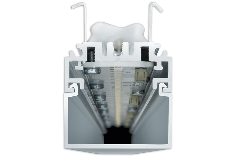 - Passgenaue LED-Leuchteneinheiten in unterschiedlichen Längen mit den Optiken PUBLIC, OFFICE oder WALLWASH