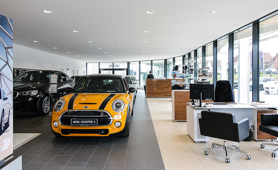 Um für eine perfekte Farbwiedergabe der Fahrzeuge zu sorgen wurde auf einen hohen CRI-Wert geachtet. Dies gibt dem Kunden zusätzlich Sicherheit bei seiner Kaufentscheidung, da Farbverfälschungen gerade im Rot-Bereich durch LEDs so vermieden werden.