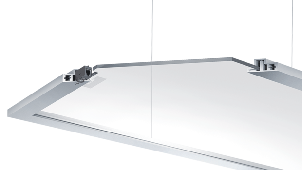 Die Pendelleuchte TRANSPARENCY scheint aus zwei Aggregatzuständen zu bestehen. Ausgeschaltet ist nur der filigrane Rahmen mit einer SICHTBARE HÖHE von 15 mm zu sehen. Eingeschaltet wird die vorher transparente Fläche zum Lichtobjekt im Raum.