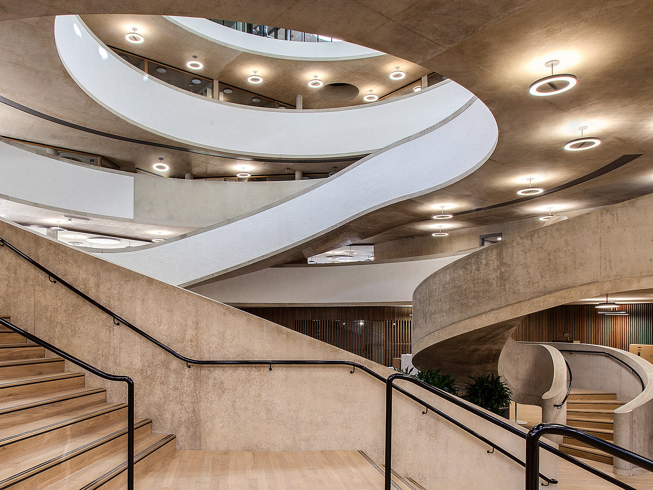 Der Neubau der „Blavatnik School of Government“ ist Teil der Universität in Oxford. Gemeinsam mit dem Architekten Herzog & de Muron und dem Lichtplaner Hoare Lea Lighting hat WILA speziell für dieses Projekt ein Leuchtenportfolio entwickelt, das sich formal am Gebäudekonzept orientiert. Die durchgängig runden LED-Leuchten, haben im gesamten Gebäude ein modernes Ambiente geschaffen.