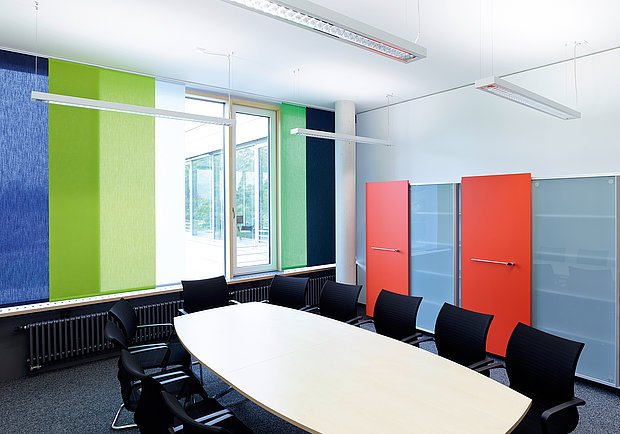 Für die Konferenz- und Büroräume entschied sich Lichtplaner Hubert Saegmüller von Lichttechnik & Design aufgrund der klaren Formsprache und dem hohen Sehkomfort für VARIATIC Pendelleuchten mit ihrem blendfreien Parabollamellenraster und UGR <19.