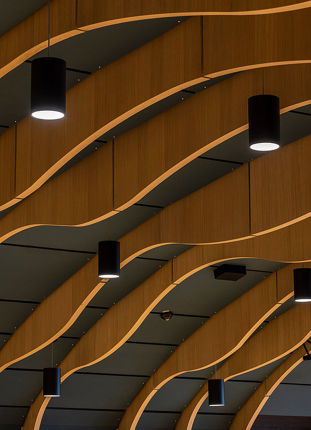 An milden Sommerabenden kann die Glasfassade vollständig geöffnet werden, die Zuschauer sitzen dann nicht im Konzertsaal, sondern genießen eine Open-Air-Atmosphäre auf den Sitzstufen wie im Amphitheater.
