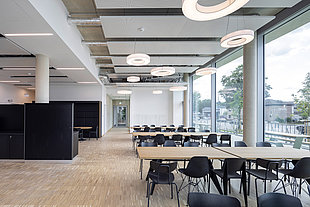 Das Gebäude wurde vom integralen SSP-Planungsteam zukunftsorientiert und auf eine flexible Nutzung konzipiert. Die offenen, modularen Bürobereiche ermöglichen eine individuelle Einteilung durch die Nutzer und können somit auf verschiedenste Anforderungen in einer modernen Arbeitswelt reagieren.